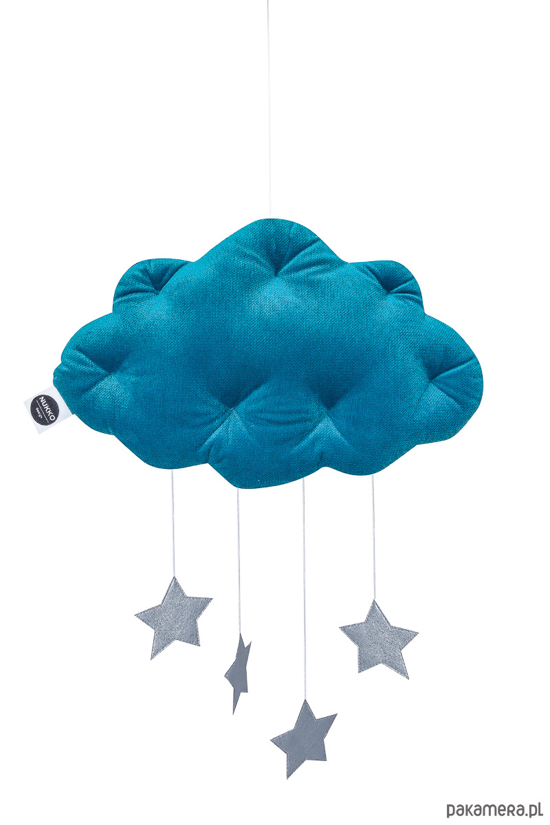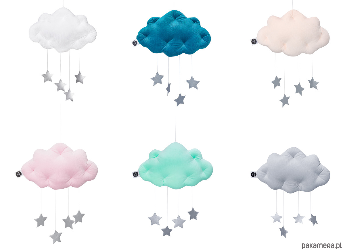 Mobil chmurka Velvet ze srebrnymi metalicznymi gwiazdkami doda uroku każdemu wnętrzu. Znajdzie swoje miejsce pod baldachimem, nad łóżeczkiem lub ozdobi ścianę pokoiku dziecka. Jest to niezwykły element dekoracyjny, który dopełni aranżację pokoiku malucha i rozbudzi jego wyobraźnie.
