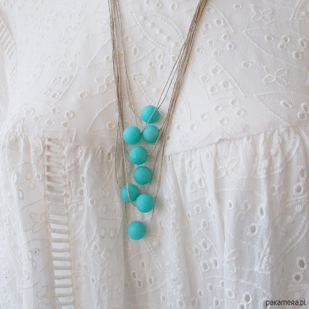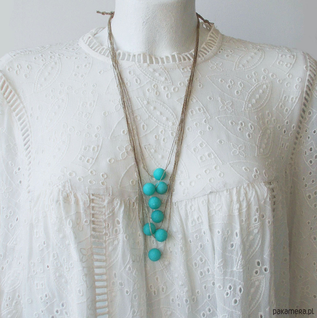 Lniany naszyjnik z kulkami matowego jadeitu w pięknym kolorze jasnego turkusu