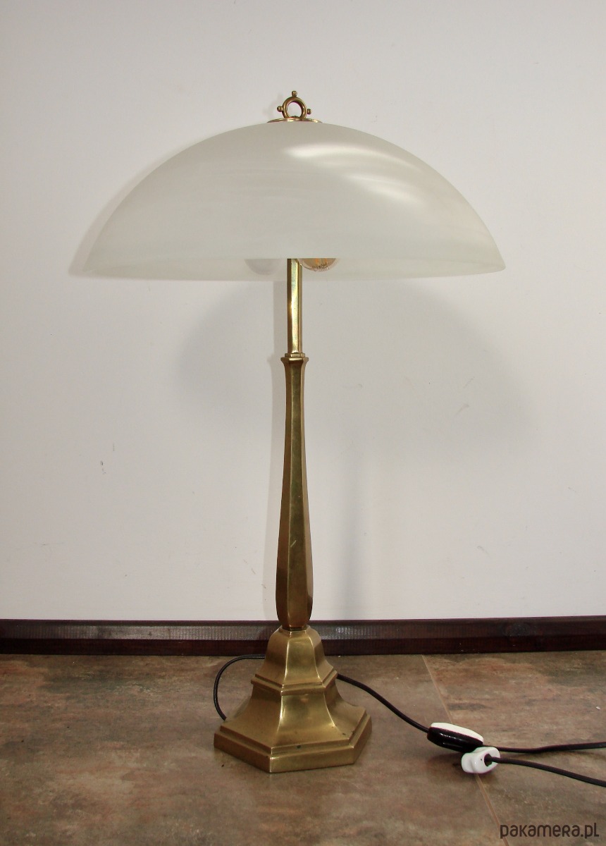 Wyjątkowa mosiężna lampa w stylu Art Deco pochodząca z lat 40. XX wieku. Klasyczna, elegancka forma łączy geometryczną estetykę epoki z ponadczasowym charakterem szlachetnych materiałów.