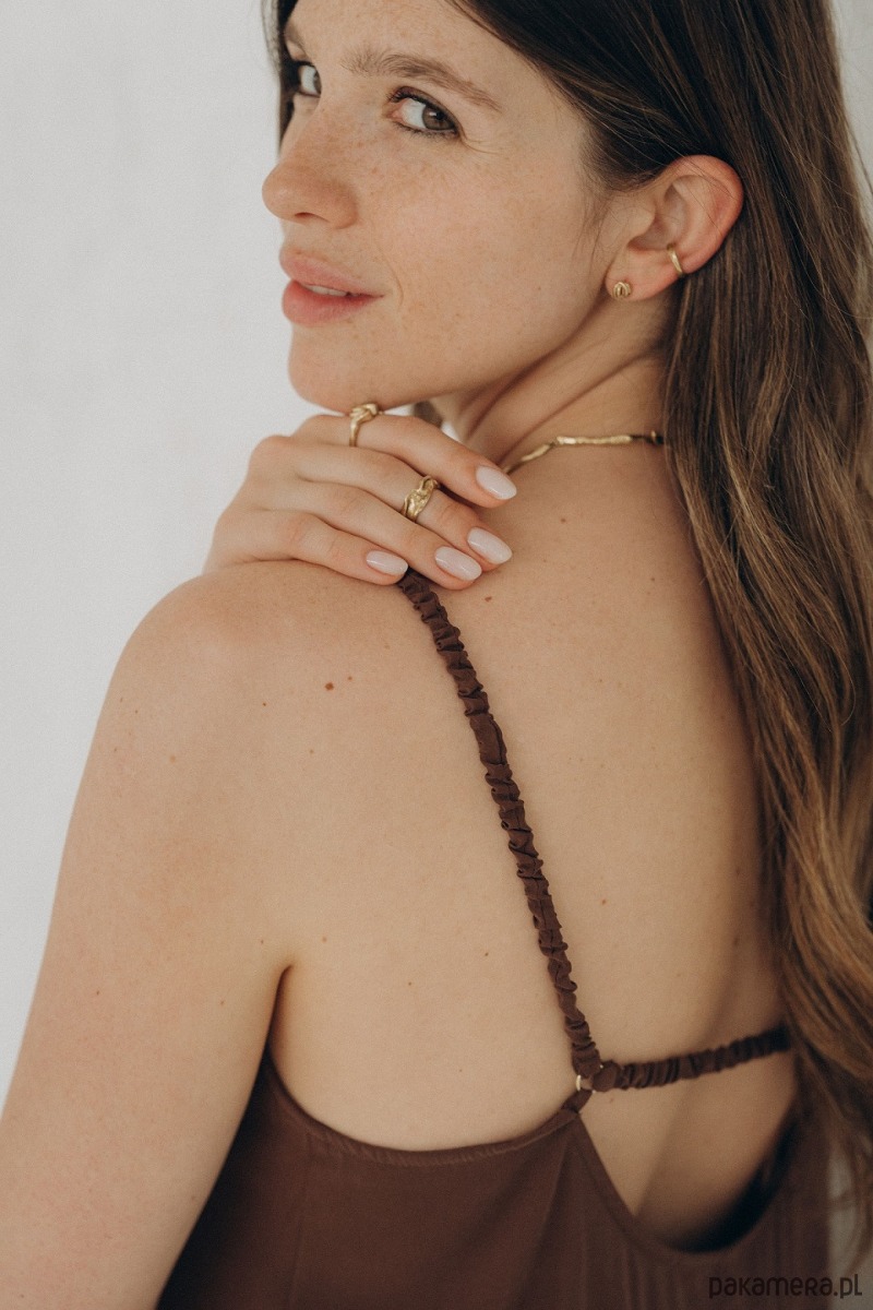 To biżuteria dla osób, które chcą w prosty sposób zmienić charakter stylizacji lub nie mają przebitych uszu. Nausznicę można nosić na zewnętrznej krawędzi ucha, z boku lub wyżej — forma dopasowuje się do ucha i daje swobodę w sposobie noszenia. Dostępna jest również w wersji srebrnej oraz złoconej na zamówienie.