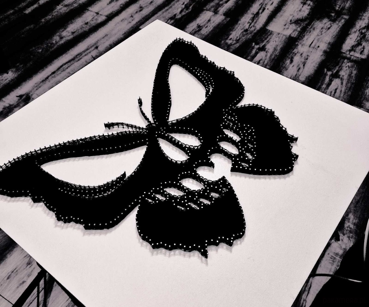Ręcznie wykonany obraz String Art – „Motyl z motywem czaszki”