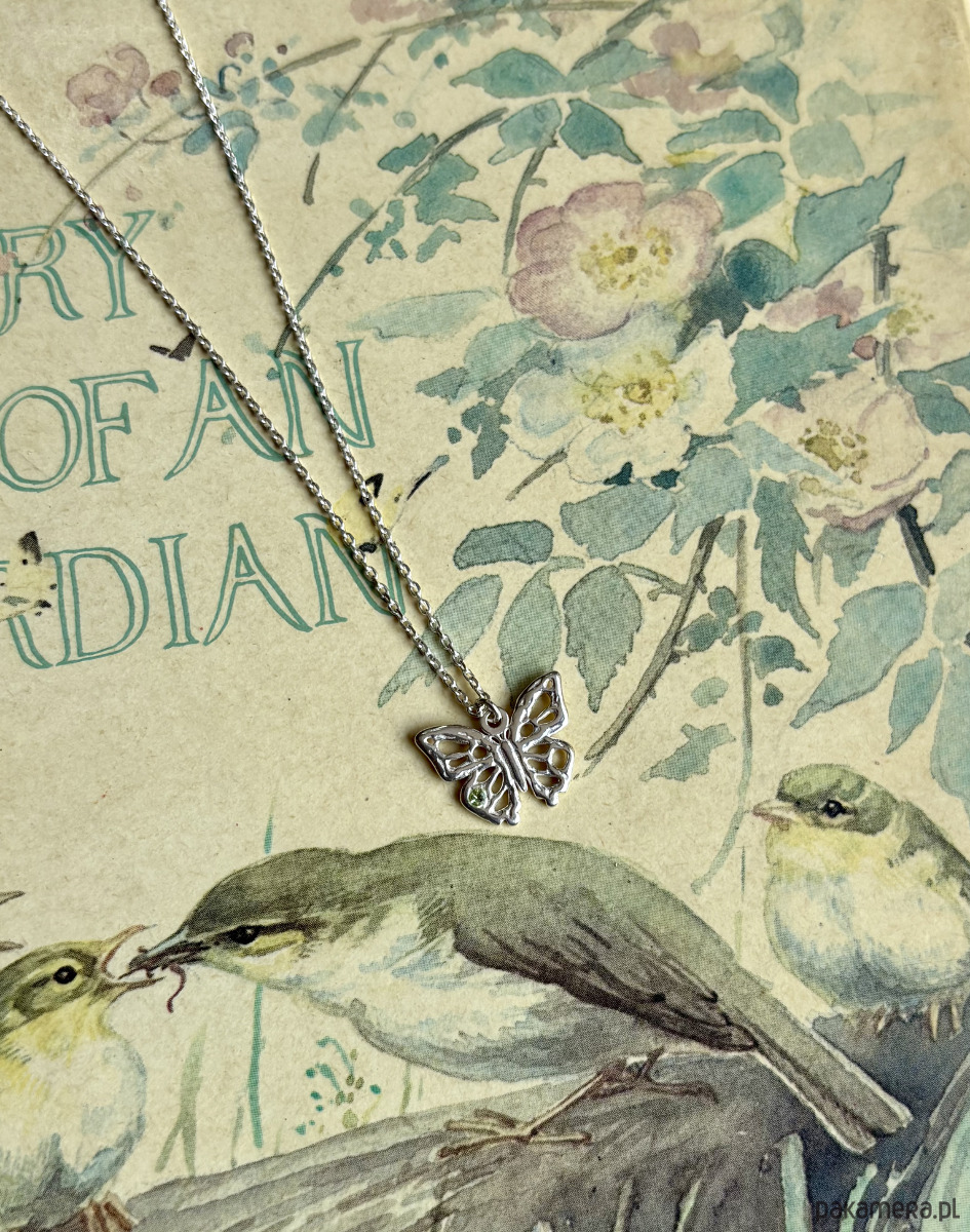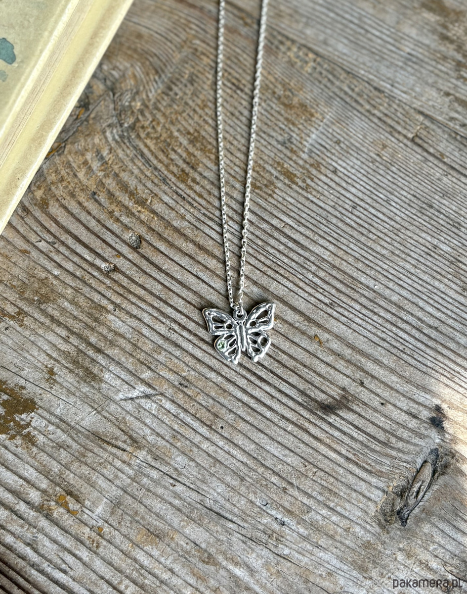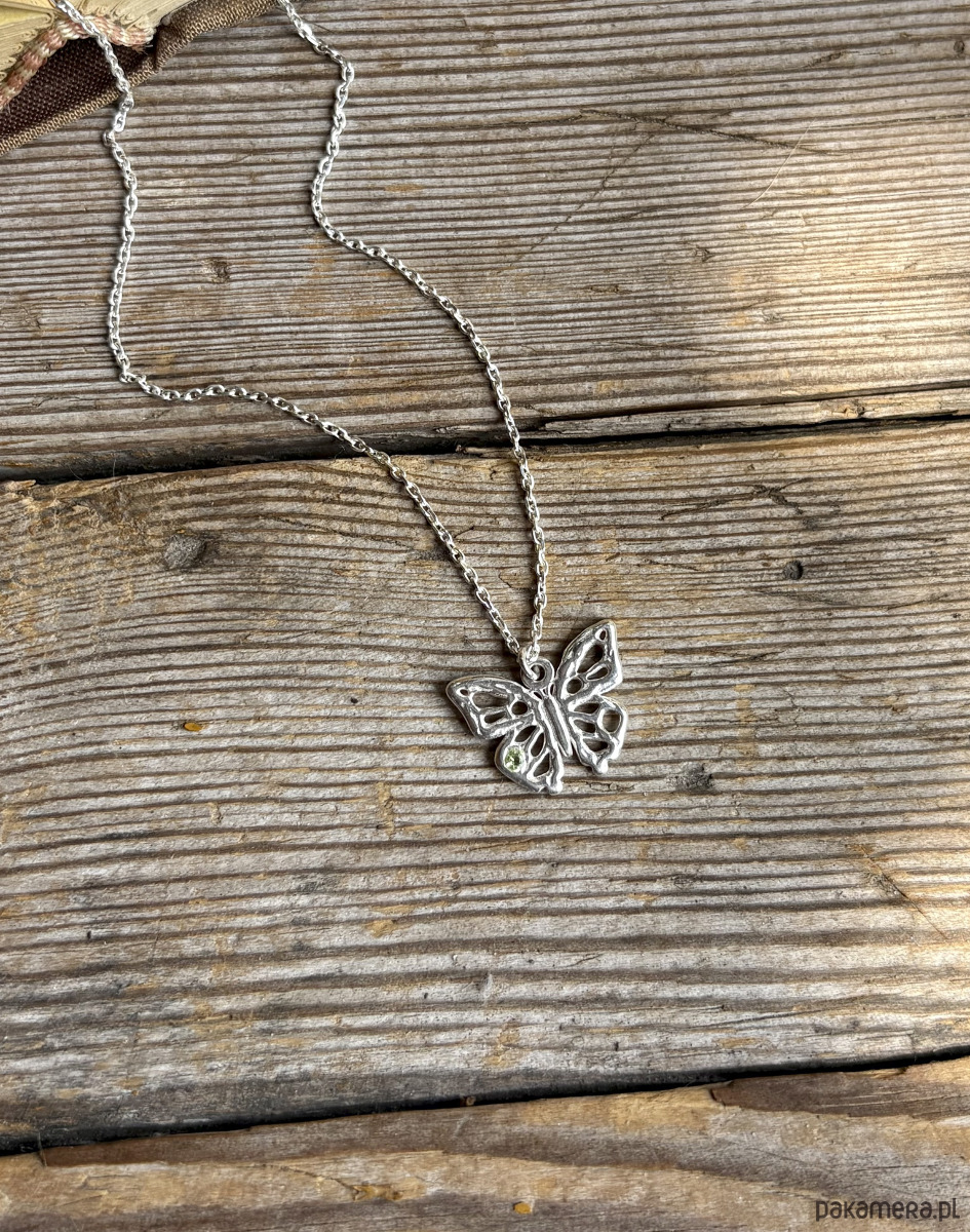 Naszyjnik-prototyp z ażurowym motylkiem z dodatkiem mini zielonej cyrkonii