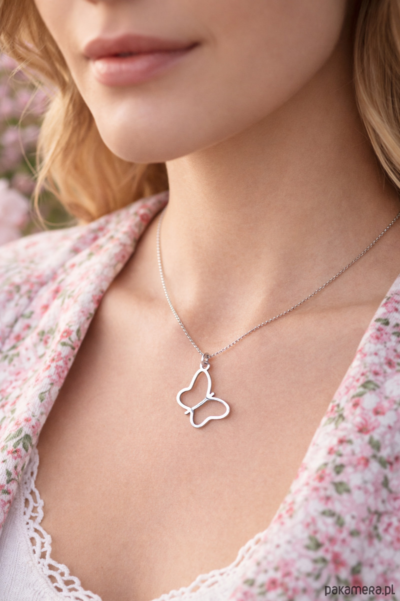 Naszyjnik z zawieszką w kształcie motylka.