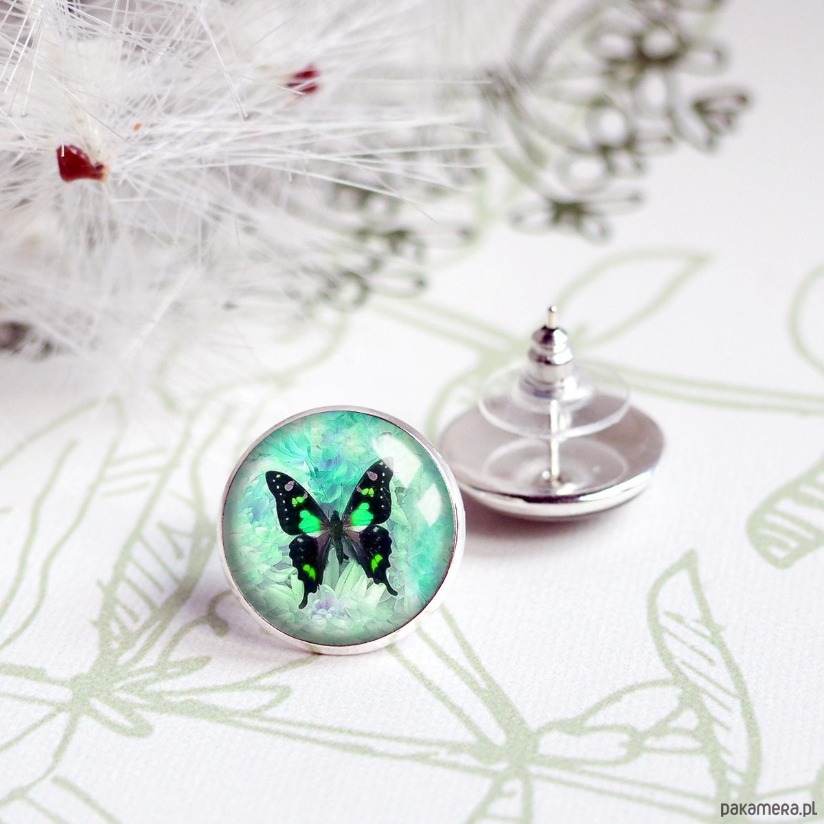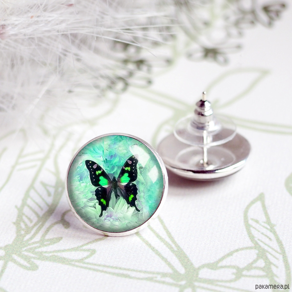 Śliczne kolorowe kolczyki na sztyfcie, tak zwane wkrętki, z oryginalną grafiką zatopioną pod wypukłym szkiełkiem, w oprawie w kolorze srebra. Grafika jest najwyższej jakości, wywołana na papierze fotograficznym, dokładnie odzwierciedla szczegóły. Szkła z grafiką są unikatowe, wykonane ręcznie według mojego projektu, z dbałością o każdy detal, dzięki czemu biżuteria ta jest jedyna w swoim rodzaju i niespotykana. Kolczyki hipoalergiczne, nie zawierają niklu i ołowiu.