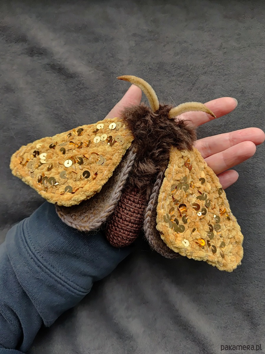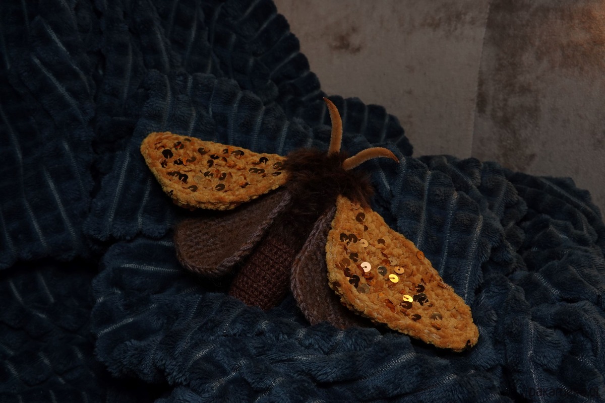 Motylek Ćma miodowo-brązowa z cekinami mały objekt decoracyjny