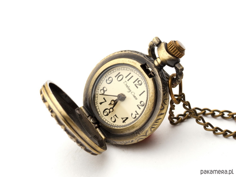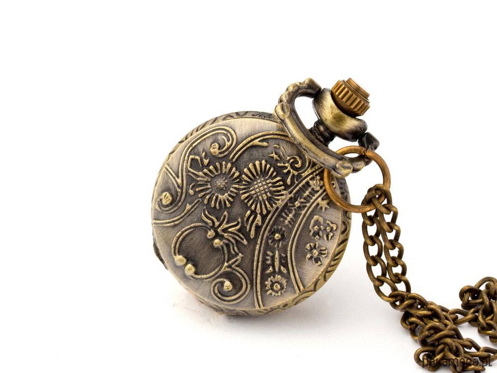 Dane techniczne:- Średnica zegarka: 2,5 cm- Grubość zegarka: 1 cm- Materiał zawieszki: Brąz- Materiał obudowy: najwyższej jakości brąz- Długość łańcuszka: 80 cm- Mechanizm: oryginalny japoński mechanizm kwarcowy