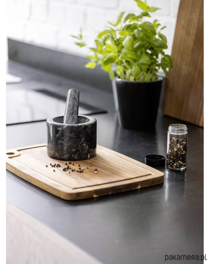 Moździerz kamienny to szyk i elegancja. Niezastąpiony w kuchni, przydatny do przygotowywania własnych mieszanek przypraw. Wykonany z marmuru, który nie przesiąka zapachami, jest bardzo wytrzymały i odporny na wszelkiego rodzaju uszkodzenia.