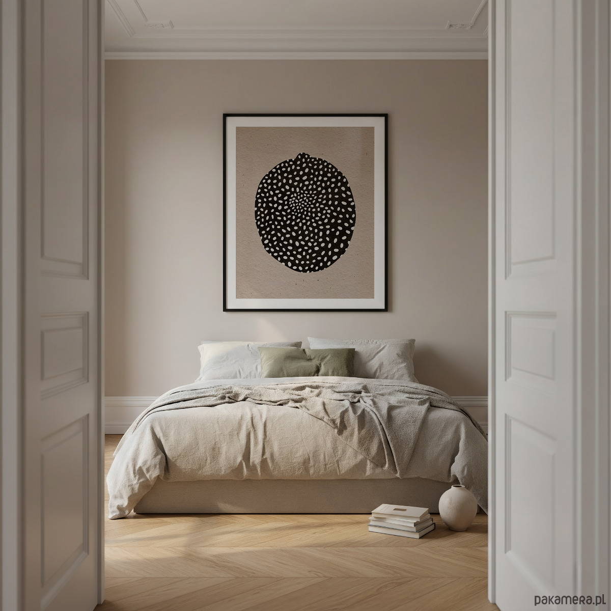 Plakat dobrze sprawdzi się jako dekoracja ścienna do salonu, sypialni lub biura. To uniwersalna propozycja dla osób, które szukają spokojnej, ale charakternej grafiki w minimalistycznym stylu.