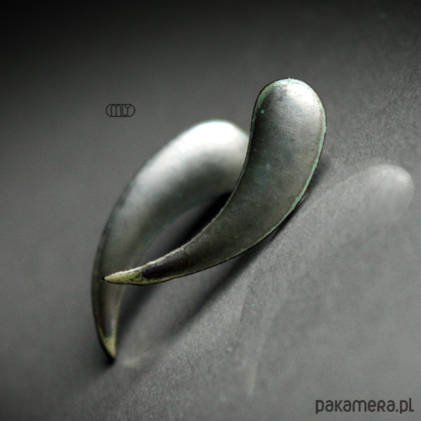 Ceramiczne podłużne kolczyki, ręcznie wykonane z delikatnej gliny kamionkowej, jednostronnie szkliwione mieszanką srebrzysto zielonych szkliw z efektem plamek, tył matowy, na antyalergicznych sztyftach w kolorze srebrnym.długość ok 2,8cm. Polecam