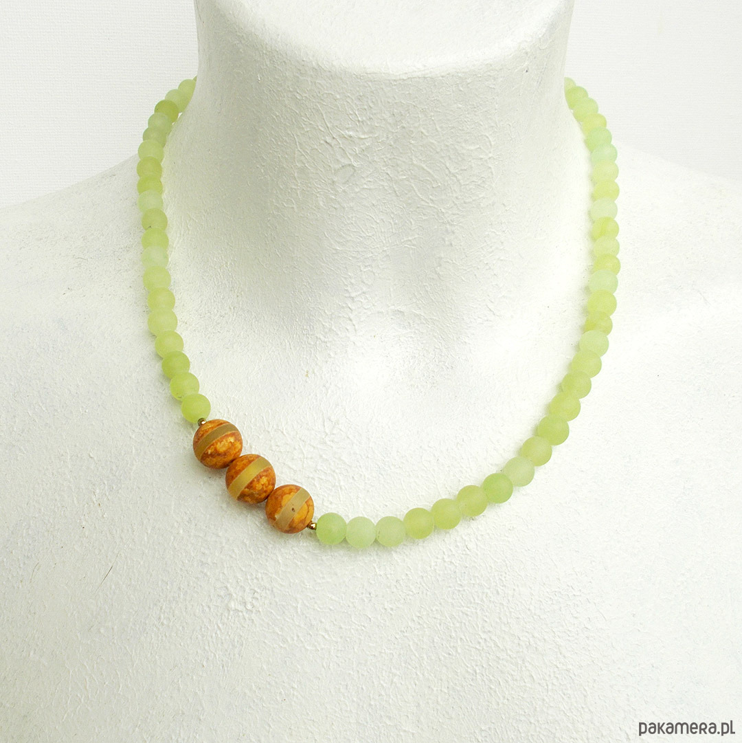 Naszyjnik z kamieniami jadeitu i asymetrycznie umieszczonymi kamieniami agatu