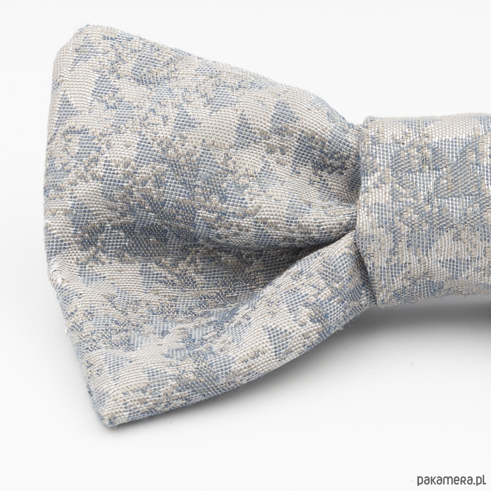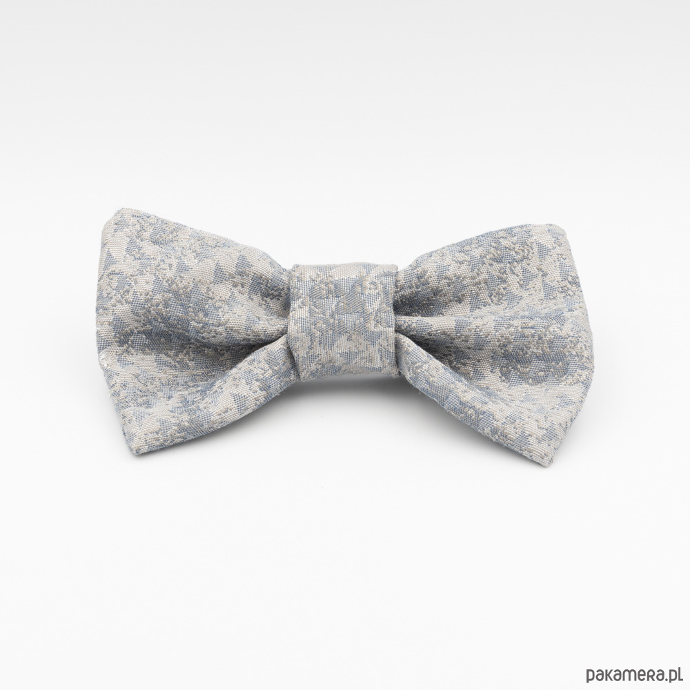 Jasna ręcznie szyta mucha w odcieniu szarym z przeszyciem niebieską nitką o delikatnym wzorze. Jest uniwersalna i pasuje niemal do każdej stylizacji, a do tego została wyprodukowana z resztek materiałów, zgodnie z ideą zero waste. Regulowane zapięcie na haczyk-motylek zapewnia wygodę noszenia i łatwość zakładania oraz zdejmowania.