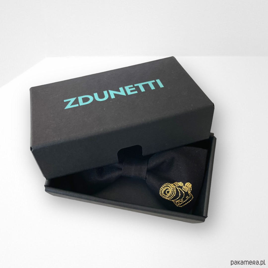 Zapakowana w czarne pudełko (z tektury litej) z logo ZDUNETTI.