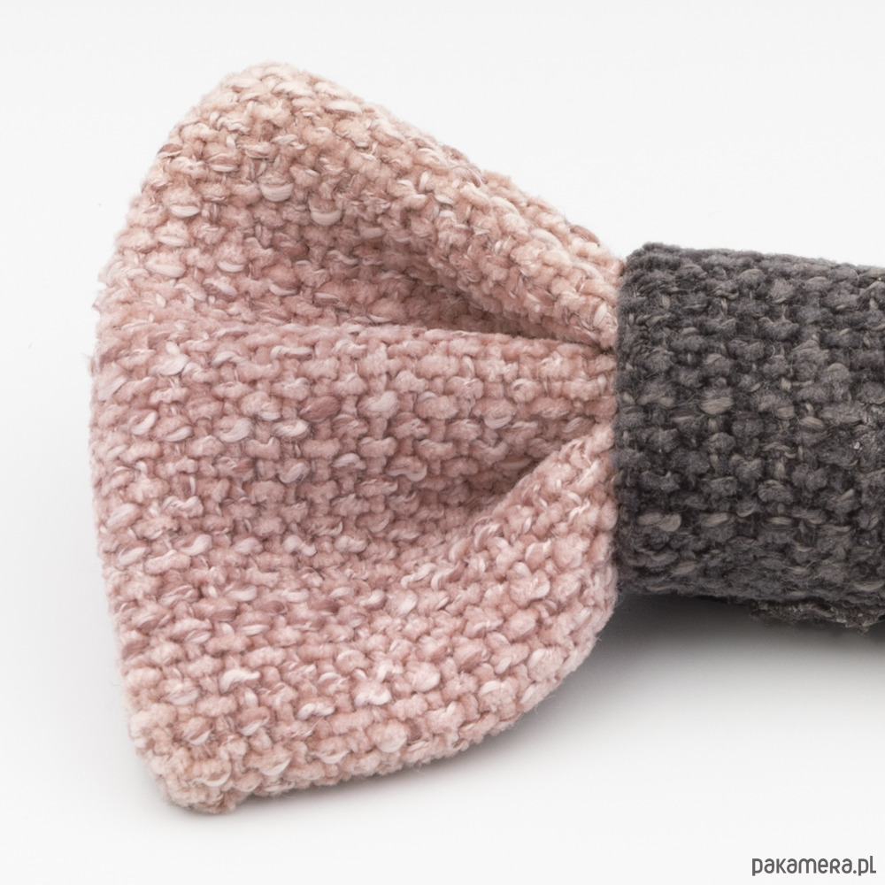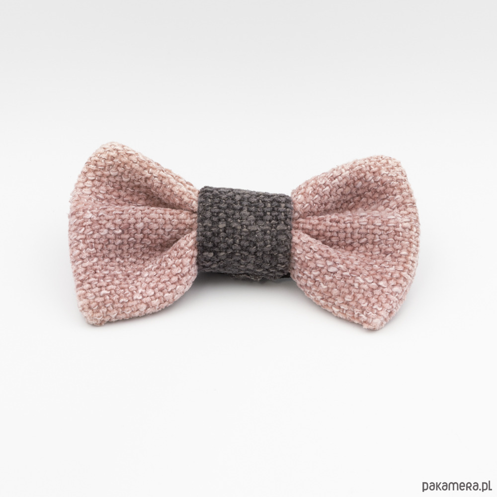 Dwukolorowa ręcznie szyta mucha z kolekcji Vintage Lux w odcieniu jasnoróżowym z ciemnoszarym środkiem, jest uszyta z tkaniny bazującej na lnianej strukturze i lekkim połysku szenilu. Regulowane zapięcie na haczyk-motylek zapewnia wygodę noszenia i łatwość zakładania oraz zdejmowania. Teraz i Ty możesz łączyć nowoczesność z klasycznym stylem z dawnych lat!