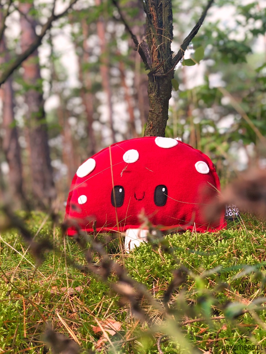 Jak już chcecie zracjonalizować sobie zakup Muchomorka, to powiedzmy że jest to bardzo fajna podusia pod główkę, która będzie pięknie się prezentować na kanapie.