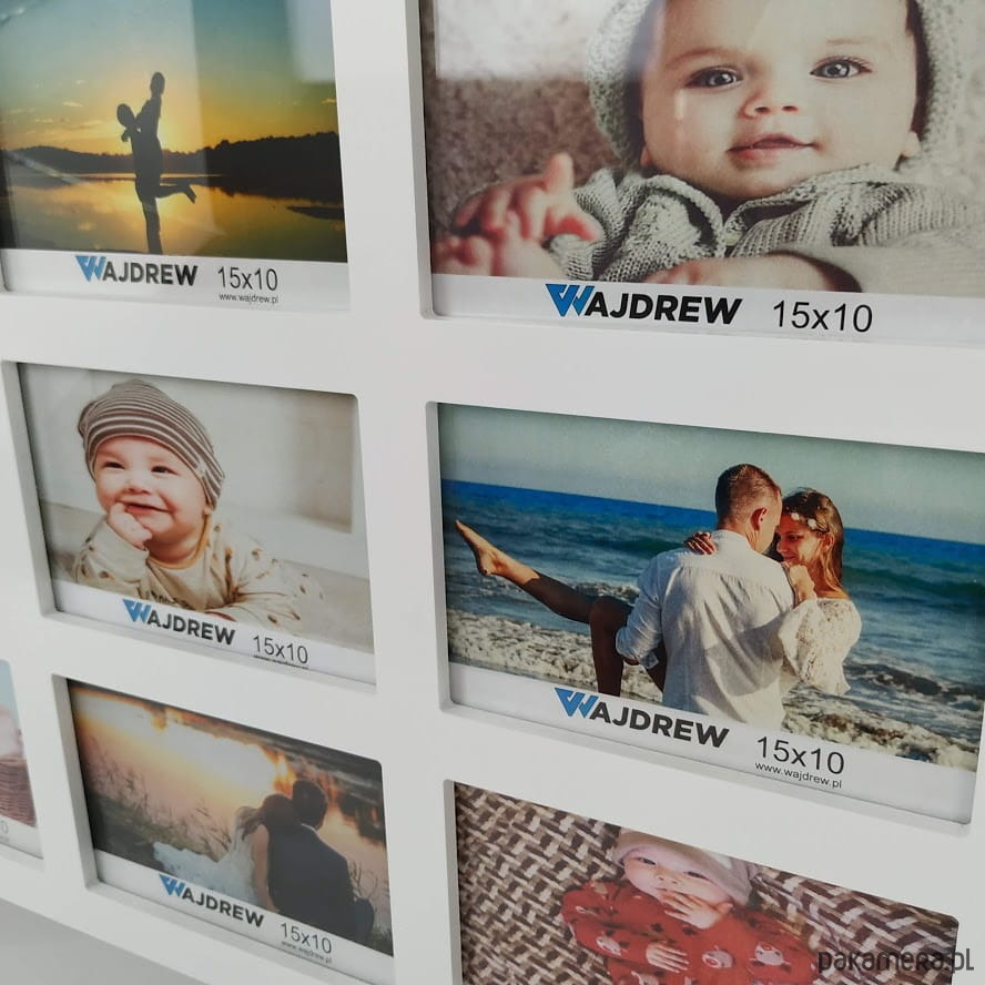 Materiał: Drewno(MDF), szkło.Ramka na 30 zdjęć w formacie 10x15 cm. Zdjęcia z przodu chronią szybki, z tyłu ramki zamocowane są metalowe zawieszki dzięki którym łatwo zawiesisz ją na ścianie. Dostępne kolory: Surowy, Biały, Czarny, Brązowy, Różowy, Błękitny, Szary, Niebieski, Czerwony, Pudrowy róż, Złoty, Srebrny
