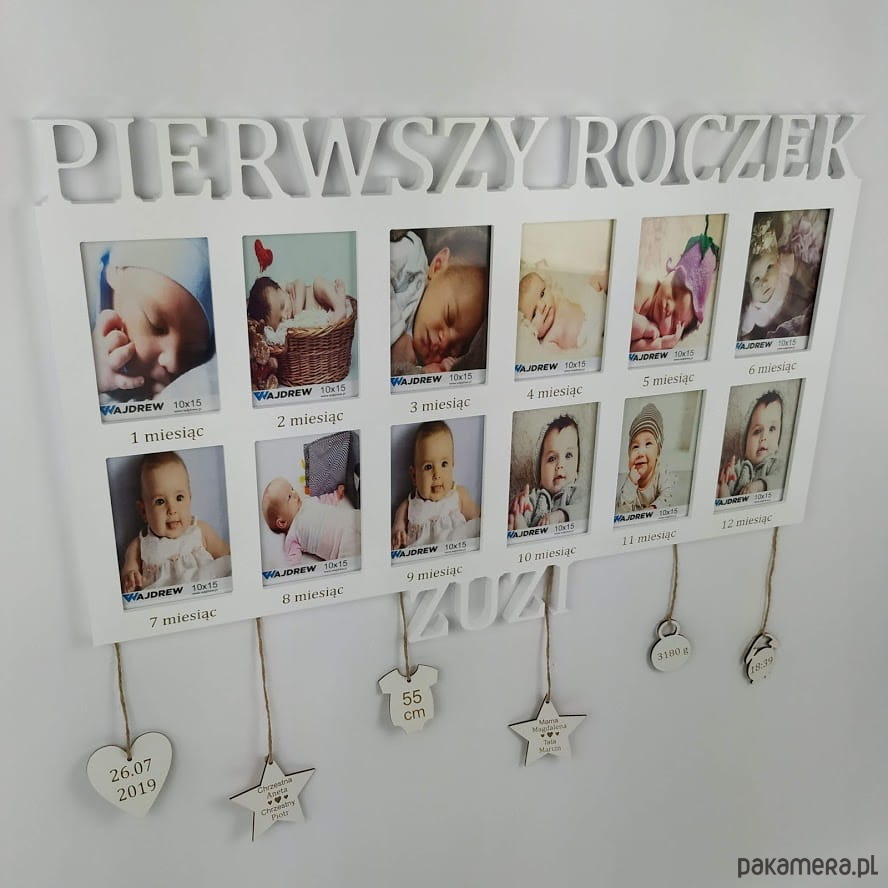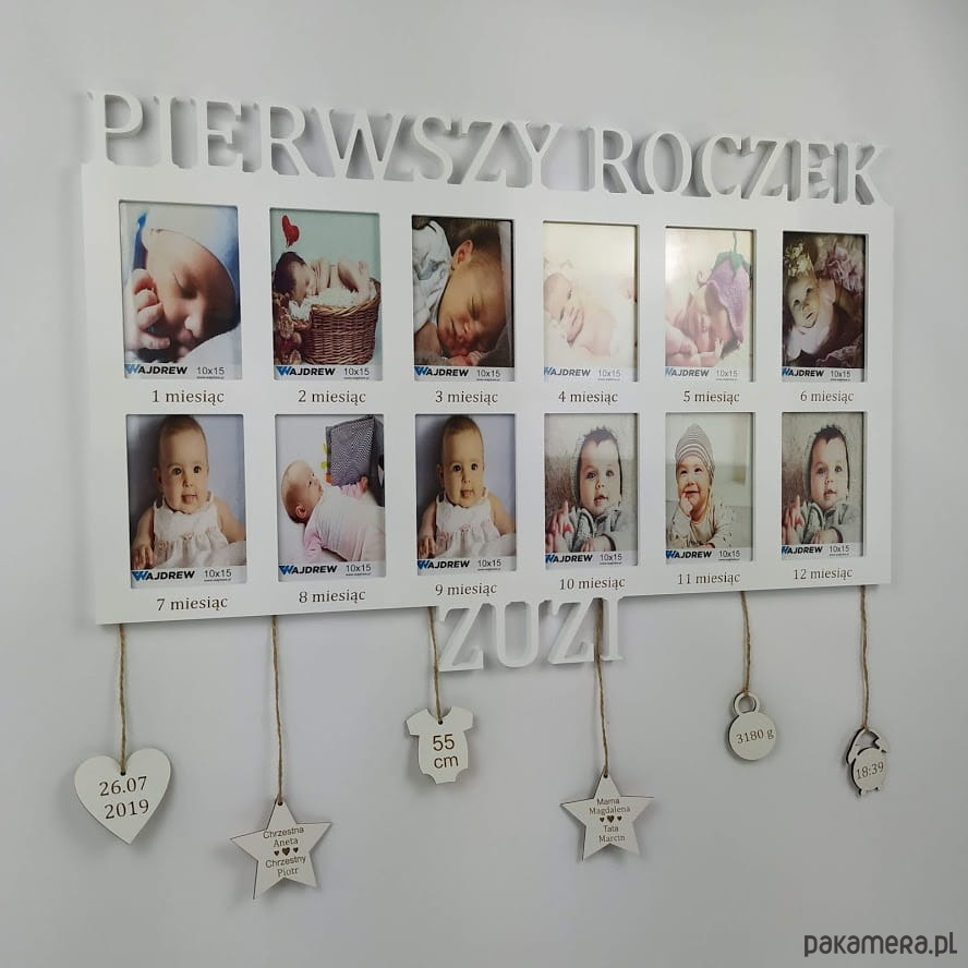 Ramka na zdjęcia Pierwszy roczek imię grawer 12 zdjęć metryczka