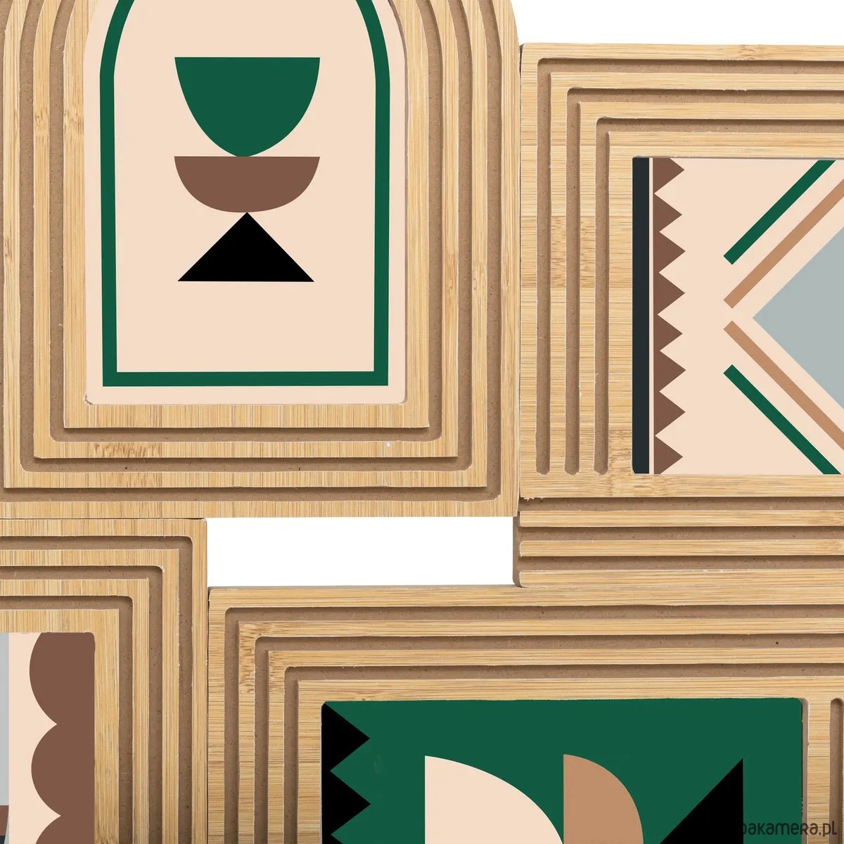 Multiramka Olivia przeznaczona jest na 5 zdjęć o wymiarach 10 × 15 cm w formacie pionowym i poziomym. Składa się z pięciu prostokątnych ramek o graficznych liniach. Całość wykonana z MDF. Orientacja pozioma.