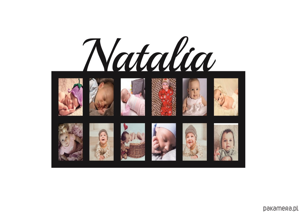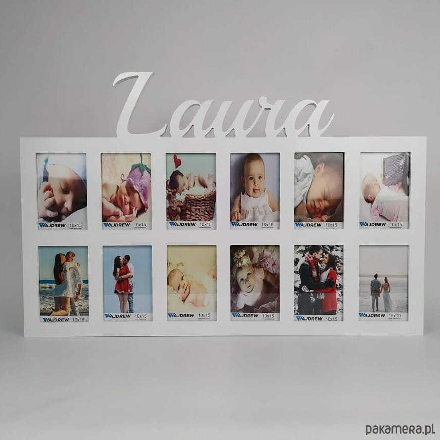 Multiramka ramka na zdjęcia imię dziecka mdf 12 zdjęć 10x15