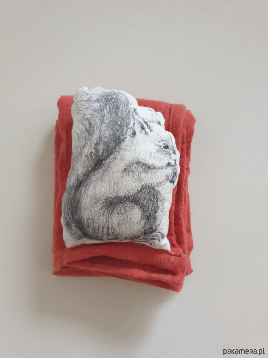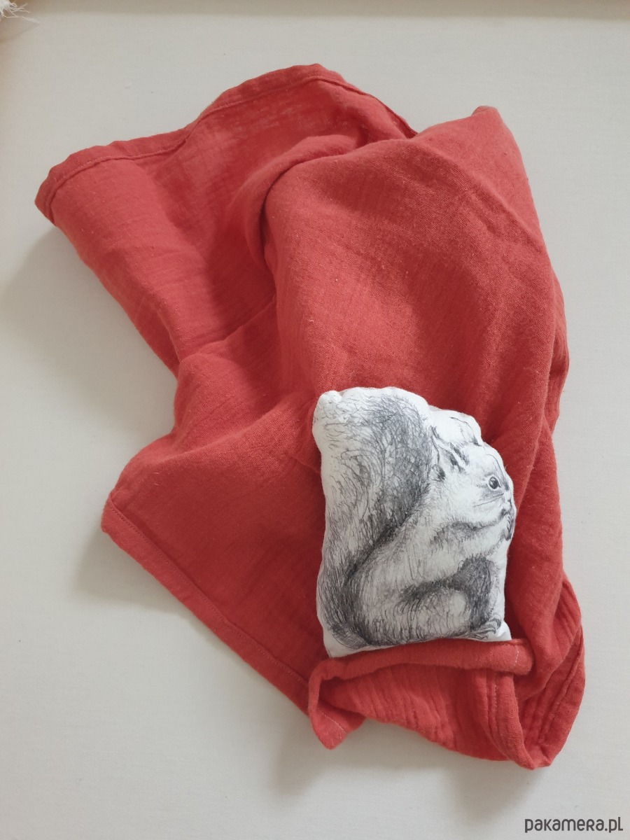 Muślinowa przytulanka z wiewiórką,ceglasty