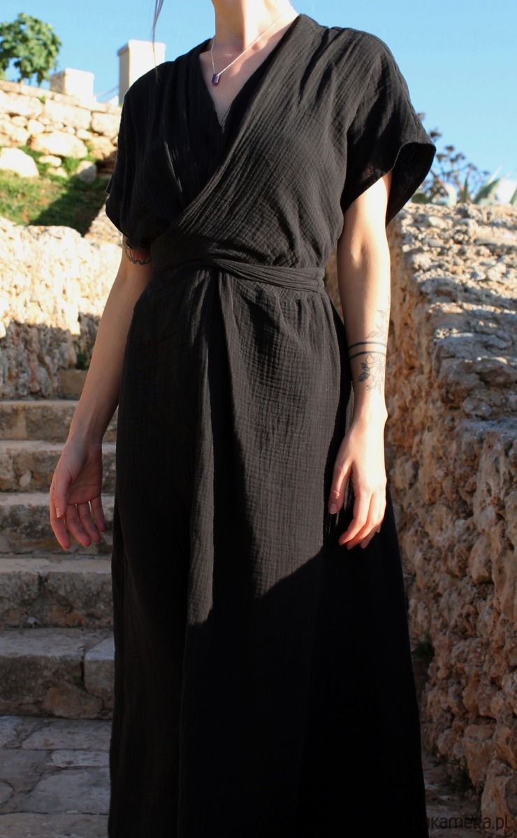 Sukienka z muślinu o luźnym kroju pozwoli Ci na swobodne, nieskrępowane ruchy. Ważne, byś przed zakupem sprawdziła swoje wymiary, ponieważ sukienka S/M może pasować również na osobę, która na co dzień nosi rozmiar XL (sprawdzone w praktyce). Ta sama sukienka świetnie leży na osobie z rozmiarem XS. Tu dzieje się magia! 🙂