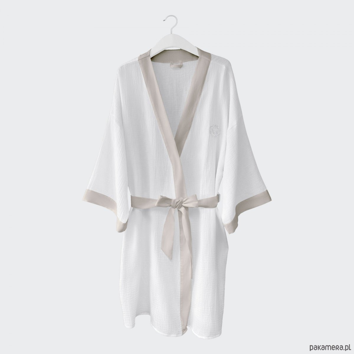 Delikatne, lekkie i przyjemne dla skóry – nasze muślinowe kimono w odcieniach bieli i beżu to absolutny must-have w szafie każdej kobiety. Wykonane ze 100% organicznej bawełny muślinowej, zapewnia komfort noszenia przez cały dzień – od porannej kawy, aż po wieczorny relaks.