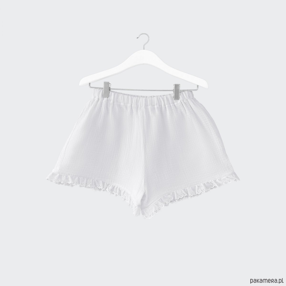 Białe spodenki do spania uszyte z miękkiego, przewiewnego muślinu to esencja komfortu zamknięta w prostej, eleganckiej formie. Naturalna tkanina otula skórę delikatnością, zapewniając pełną swobodę ruchów i lekkość przez całą noc.