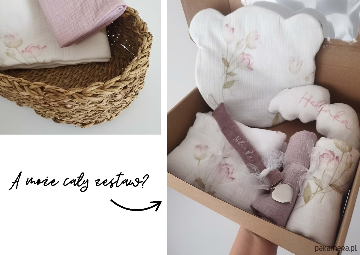 Muślinowy kocyk / otulacz (100x75 cm) + poduszka