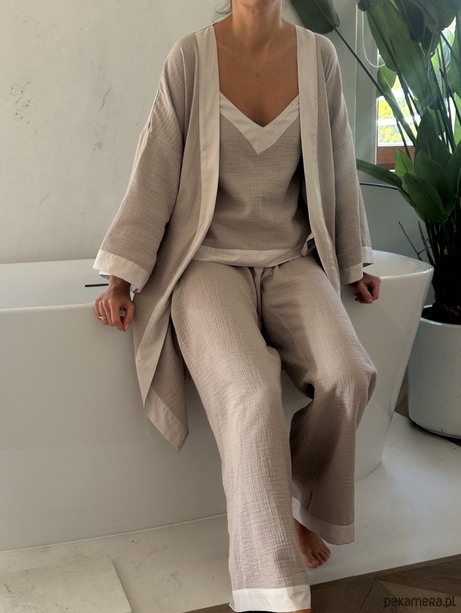 Delikatność, która otula jak poranny promień słońca. Beżowy top z muślinu to lekkość i swoboda zamknięte w kobiecej formie. Subtelne wykończenia dodają mu uroku, a naturalny materiał sprawia, że nie będziesz chciała się z nim rozstać.
