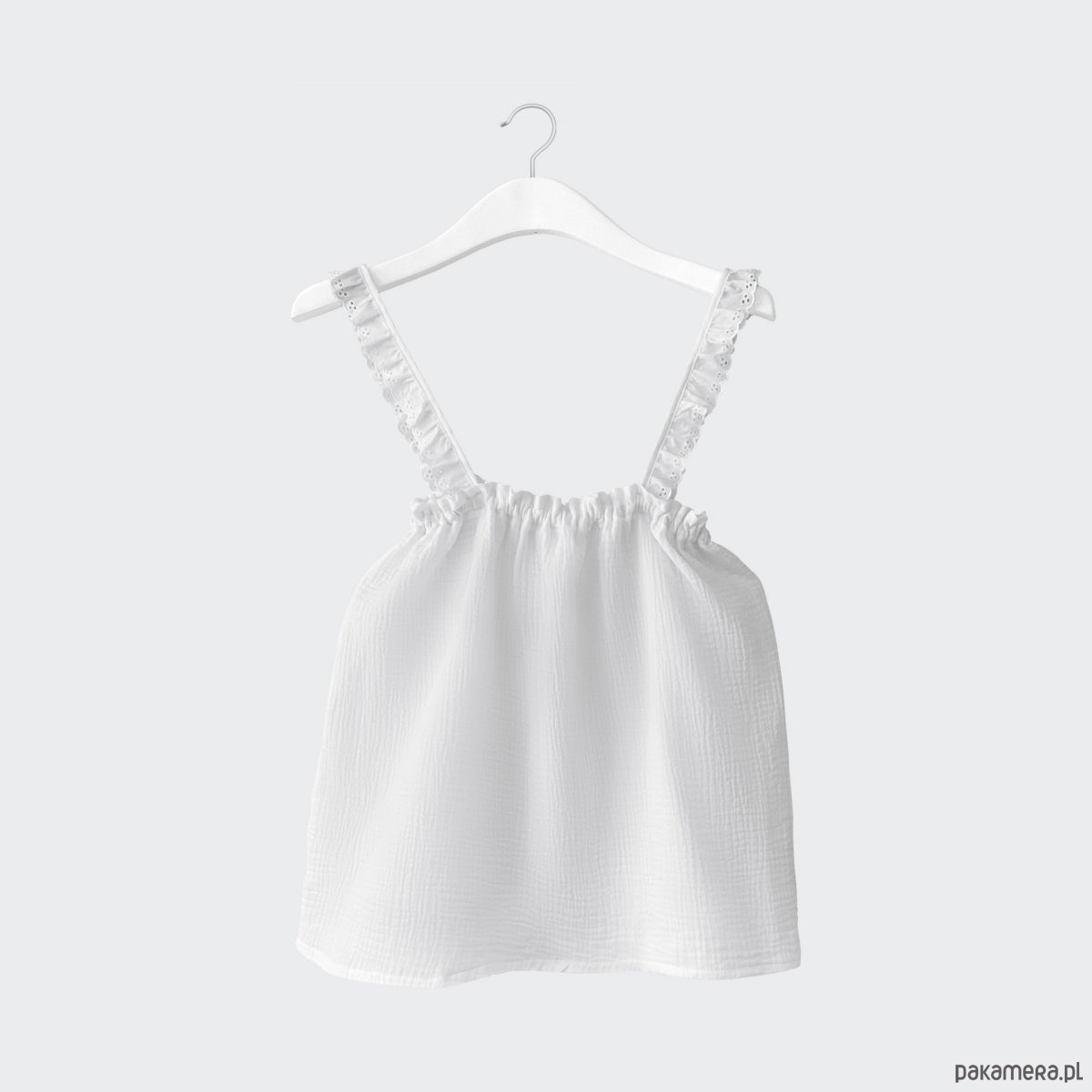 Romantyczny, zwiewny i niesamowicie wygodny — biały muślinowy top, który otula ciało miękkością i lekkością. Uszyty z oddychającej, organicznej bawełny, gwarantuje komfort i swobodę ruchów przez cały dzień. Delikatne ramiączka z koronki z haftem richelieu dodają mu uroku i nuty elegancji, dzięki czemu świetnie sprawdzi się nie tylko jako element piżamy, ale też jako letni top lub pod kardigan.