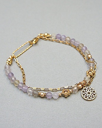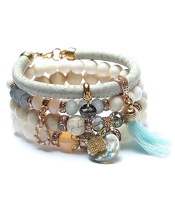 Bransoletka na miętowym sznureczku z pozłacanymi kuleczkami
