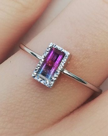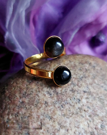 Turmalin Obsydian Pierścionek Srebro 24K złoto