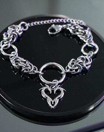Chain mail y2k goth*Hexed Heart* bransoletka stal nierdzewna