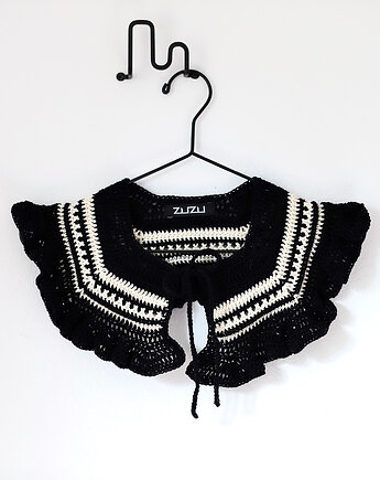 Czarno-biały kołnierzyk z falbaną VINTAGE
