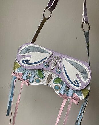 Skórzana pastelowa torebka motyl z kokardkami z upcyklingu