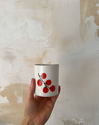Kubek porcelanowy z pomidorkami z zielonym rantem