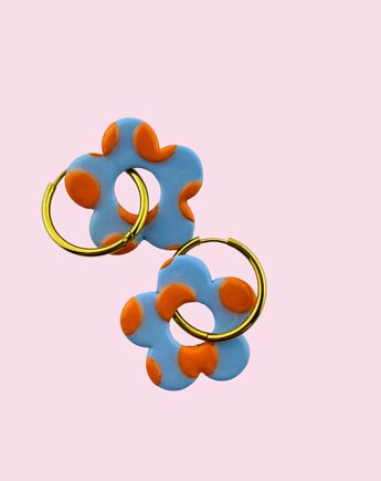 Kolczyki dwustronne w GROSZKI - błękit + pomarańcz