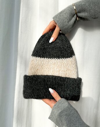 Czapka Mila beanie paski podwójne ocieplenie baby alpaka wełna merino