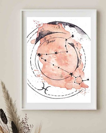 Ryby konstelacja Znak Zodiaku Pisces akwarela wydruk artystyczny