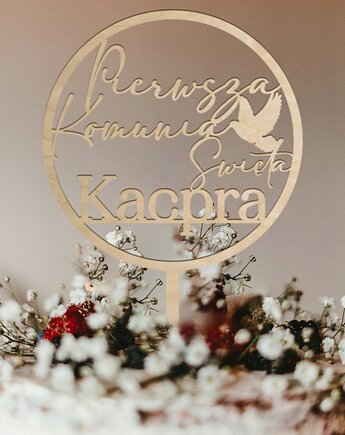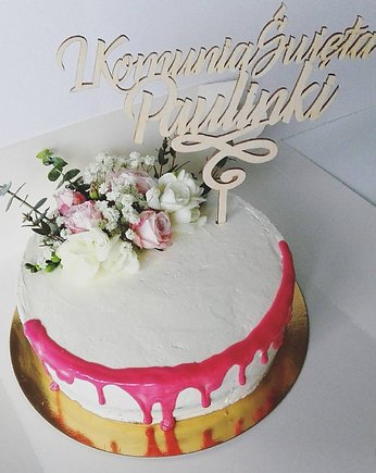 Topper Toper na tort komunijny z IMIENIEM DUŻY Pierwsza Komunia Święta imię