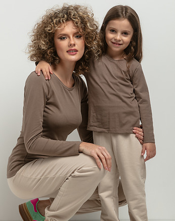 Komplet bluzek z długim rękawem dla mamy i córki, model 44, cappuccino