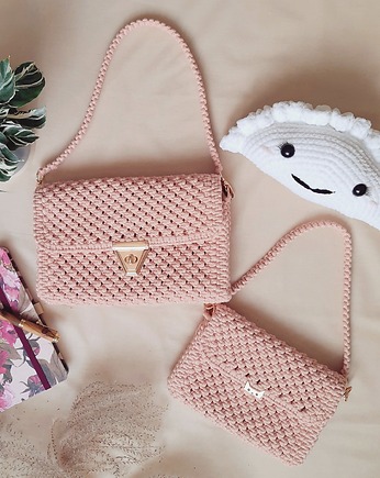 Mama i córka - zestaw dwóch torebek listonoszek ze sznurka - rosa