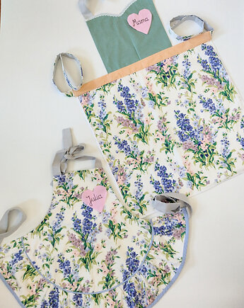Fartuszki kuchenne kwiatowy zestaw mama i córka z imieniem