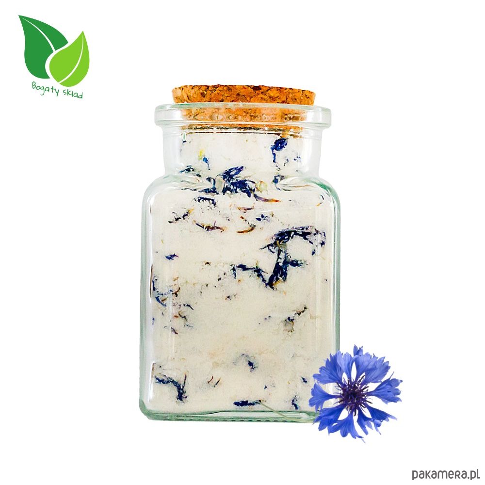 po dodaniu do wanny z ciepłą wodą, musuje jak kula kąpielowa. Posiada nie tylko przyjemny wizualny efekt, ale również miły leśny zapach z nutą słodyczy oraz suszone płatki bławatka. Dzięki zawartości mleka koziego, sody oczyszczonej, skrobi ziemniaczanej oraz oleju winogronowego pielęgnuje, tonizuje i oczyszcza skórę.