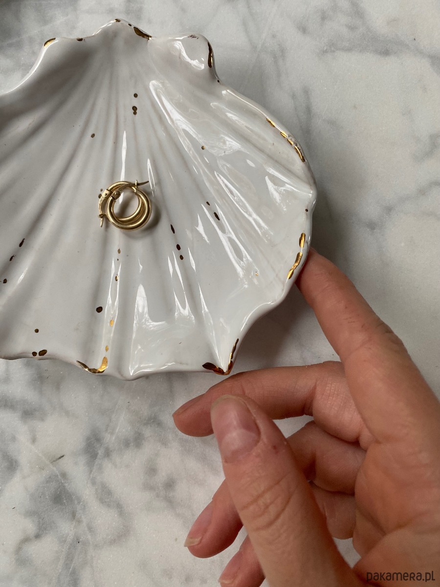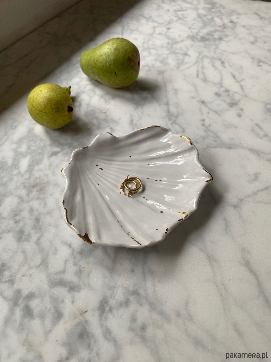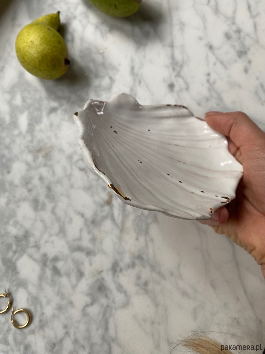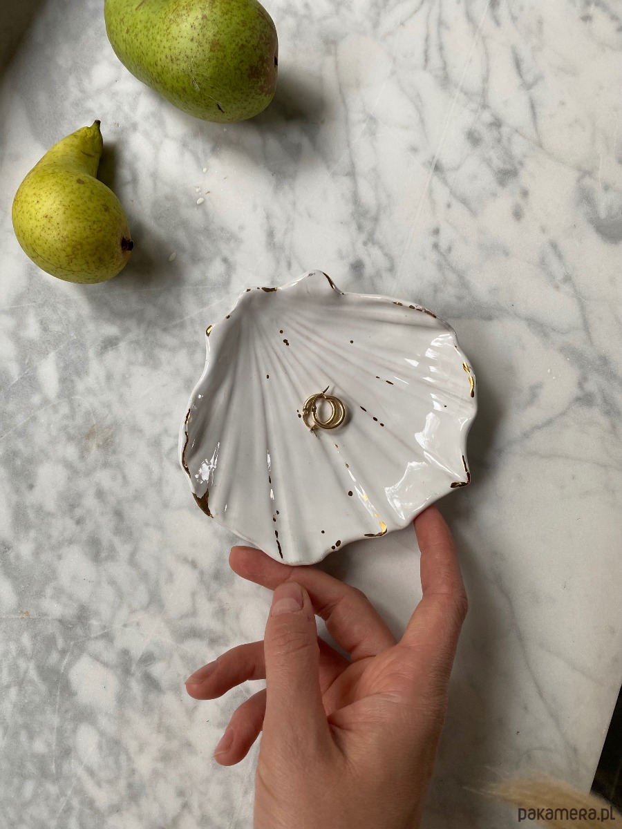 Gliniany talerzyk w kształcie muszelki. Idealna na biżuterię lub po prostu ukochane drobiazgi.