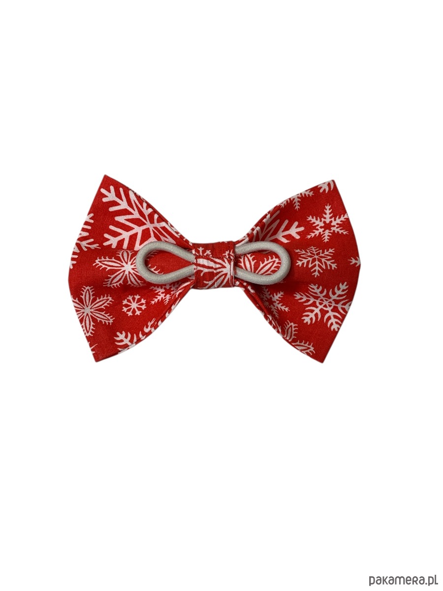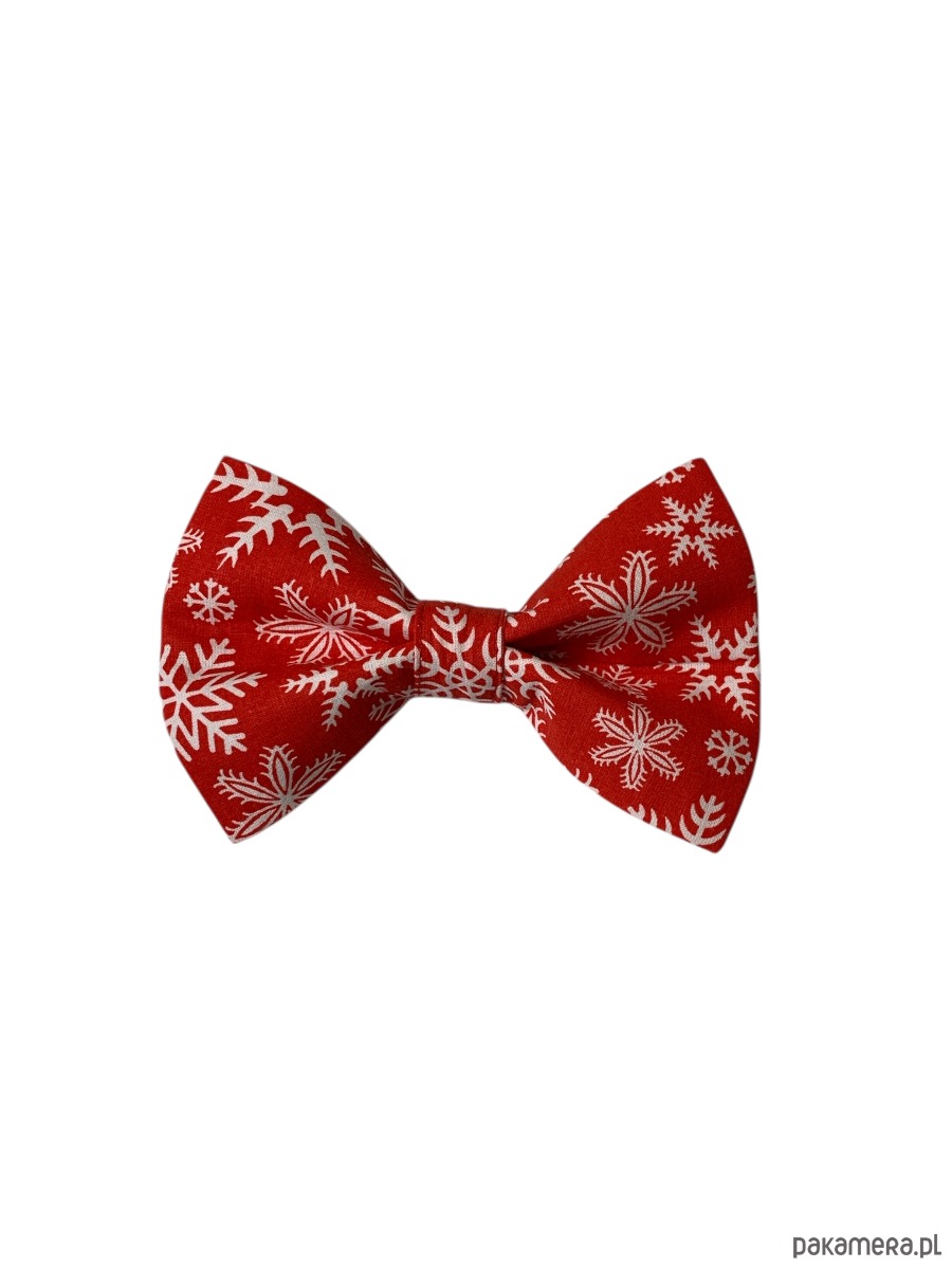 Dodaj swojemu pupilkowi odrobinę elegancji! Klasyczna muszka w czerwono-białe śnieżynki, uszyta z przyjemnej bawełny. Z tyłu ma dwie elastyczne pętelki, dzięki którym szybko nasuwasz ją na obrożę – bez klamerek i bez stresu. Lekka, wygodna i idealna na święta, sesje zdjęciowe i codzienne spacery.
