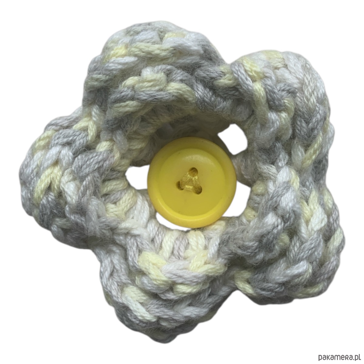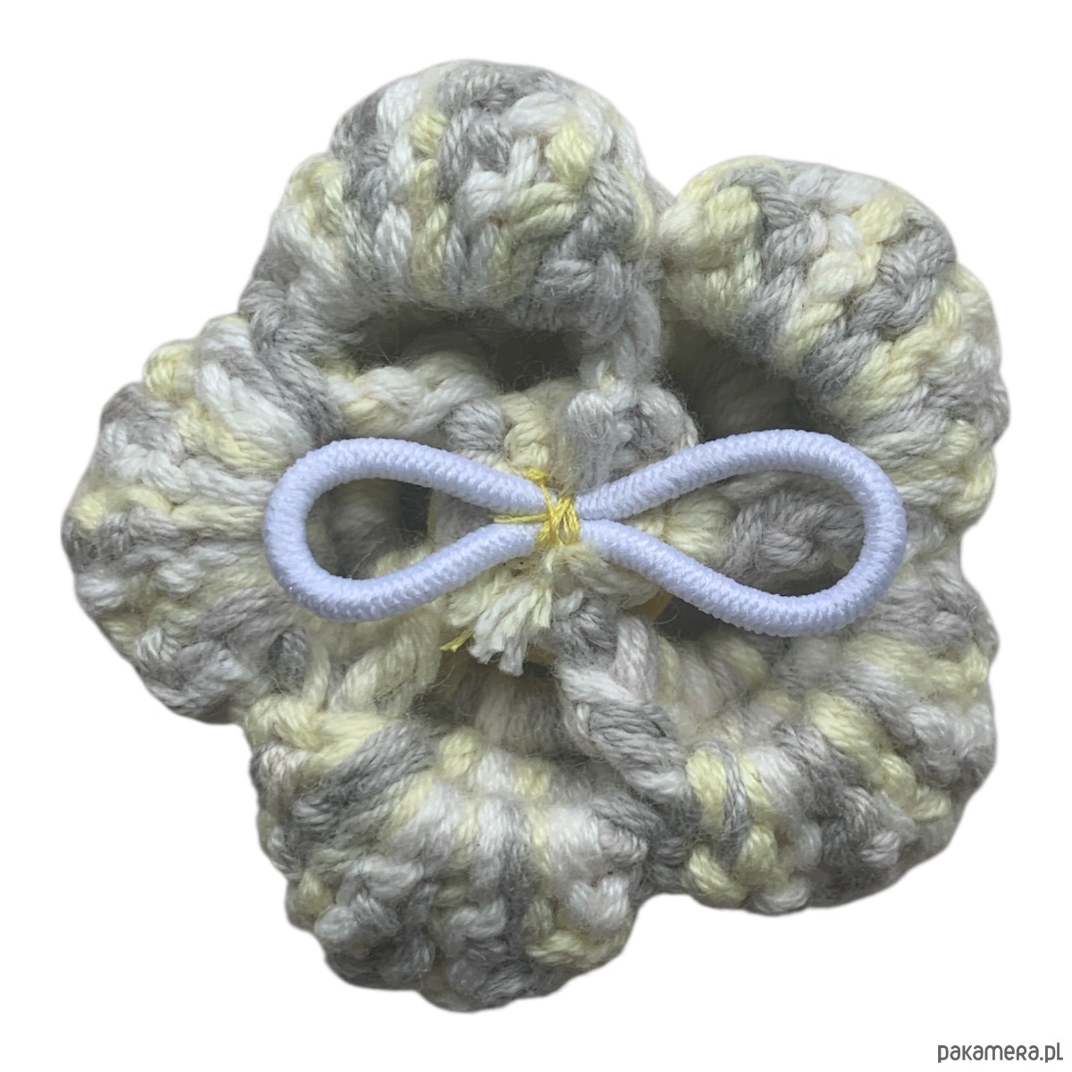 Zrobiony na szydełku ze 100% bawełny i przyszyty do gumki.