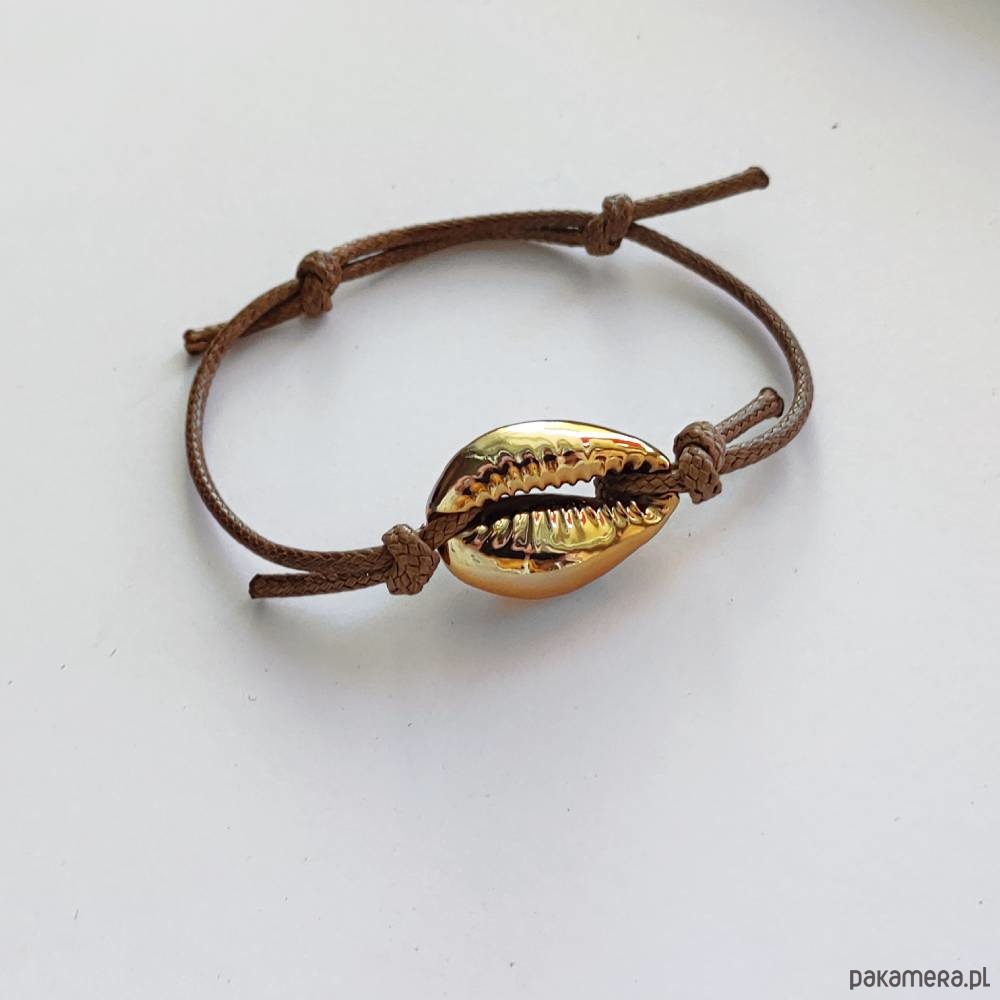 MUSZLE - zabawny dodatek. Ciekawy dodatek przykuwają uwagę i zaskakuje wzornictwem. Taka bransoletka sprawi, że każda stylizacja nabierze niepowtarzalnego, fantazyjnego charakteru. Bransoletka wykonana jest z Muszelki Kauri cięte platerowane metalik 20mm , ozdobny sznurek.
