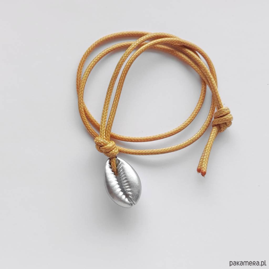 MUSZLE - zabawny dodatek. Ciekawy dodatek przykuwają uwagę i zaskakuje wzornictwem. Taki wisiorek sprawi, że każda stylizacja nabierze niepowtarzalnego, fantazyjnego charakteru. Wisiorek wykonany jest z Muszelki Kauri cięte platerowane metalik 20mm , ozdobny sznurek.