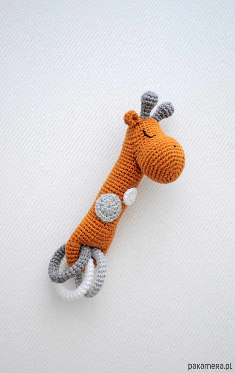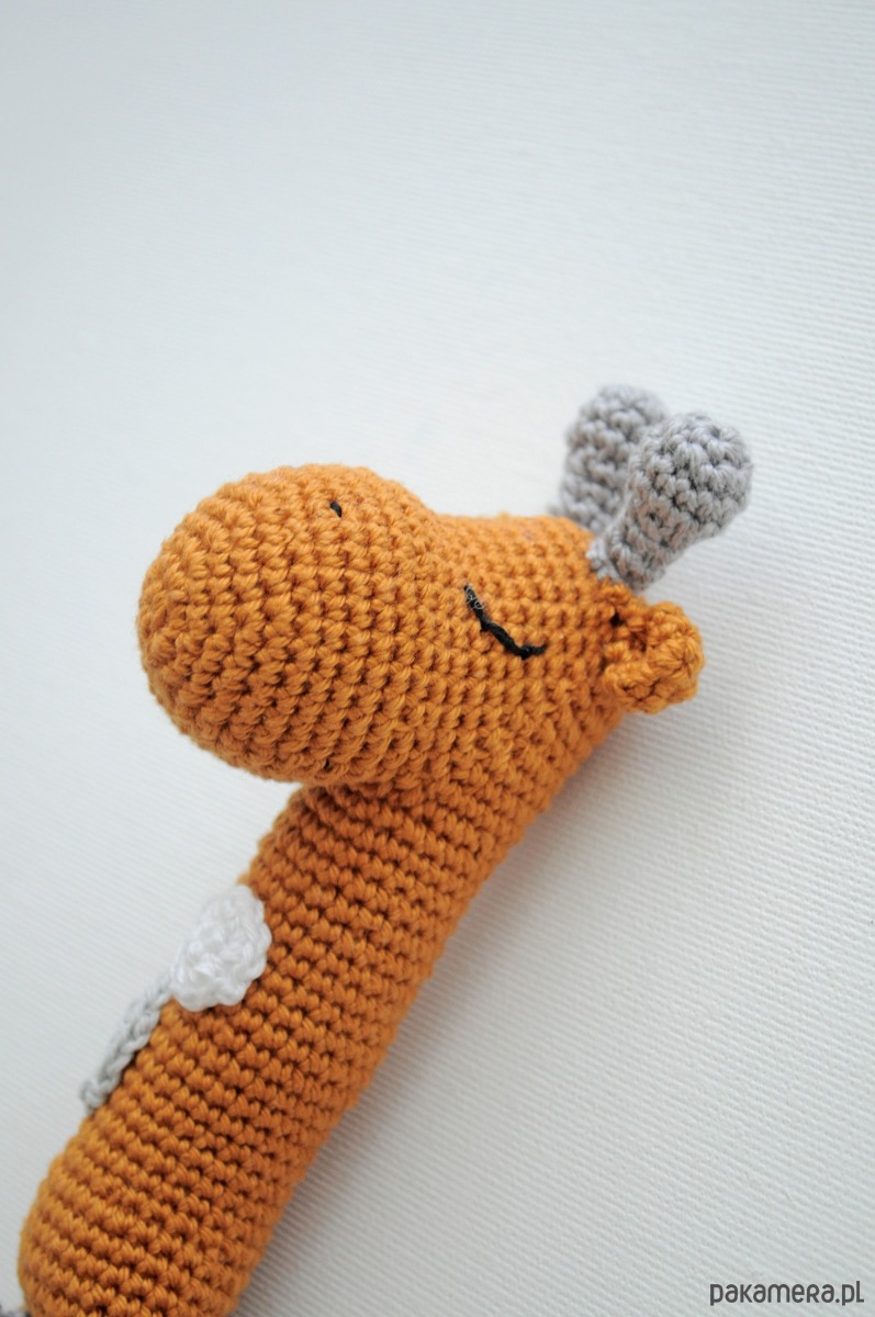 Musztardowa żyrafka może posłużyć jako oryginalny prezent dla maluszka i jego rodziców, ozdoba na babyshower lub dekoracja pokoju dziecięcego.