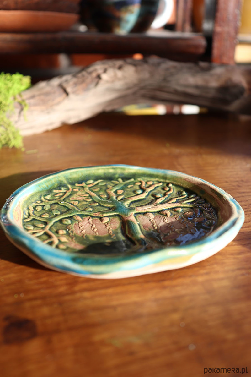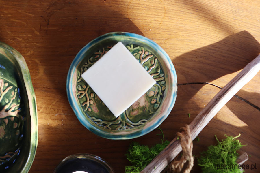Mydelniczka, akcesoria do łazienki, ceramiczna, wzory, zielona